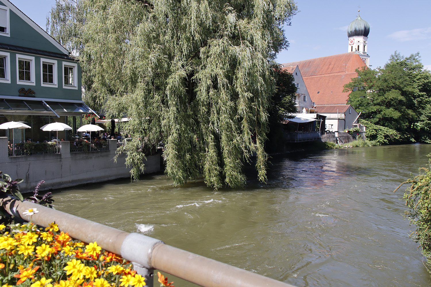 Das hübsche Städtchen eignet sich gut für eine Rast: Der große Marktplatz mit dem Alten Rathaus, historischen Bürgerhäusern und den beiden imposanten Kirchen Sankt Leonhard und Sankt Magdalena lohnt einen Bummel, und in der Klosterkirche sind barocke Wandmalereien und Altäre der Brüder Asam zu finden. Aber das Beste: Direkt am Fluss, neben der Amperbrücke, laden blumengeschmückte Cafés zu einem Cappuccino, Eis oder Stück Kuchen ein.