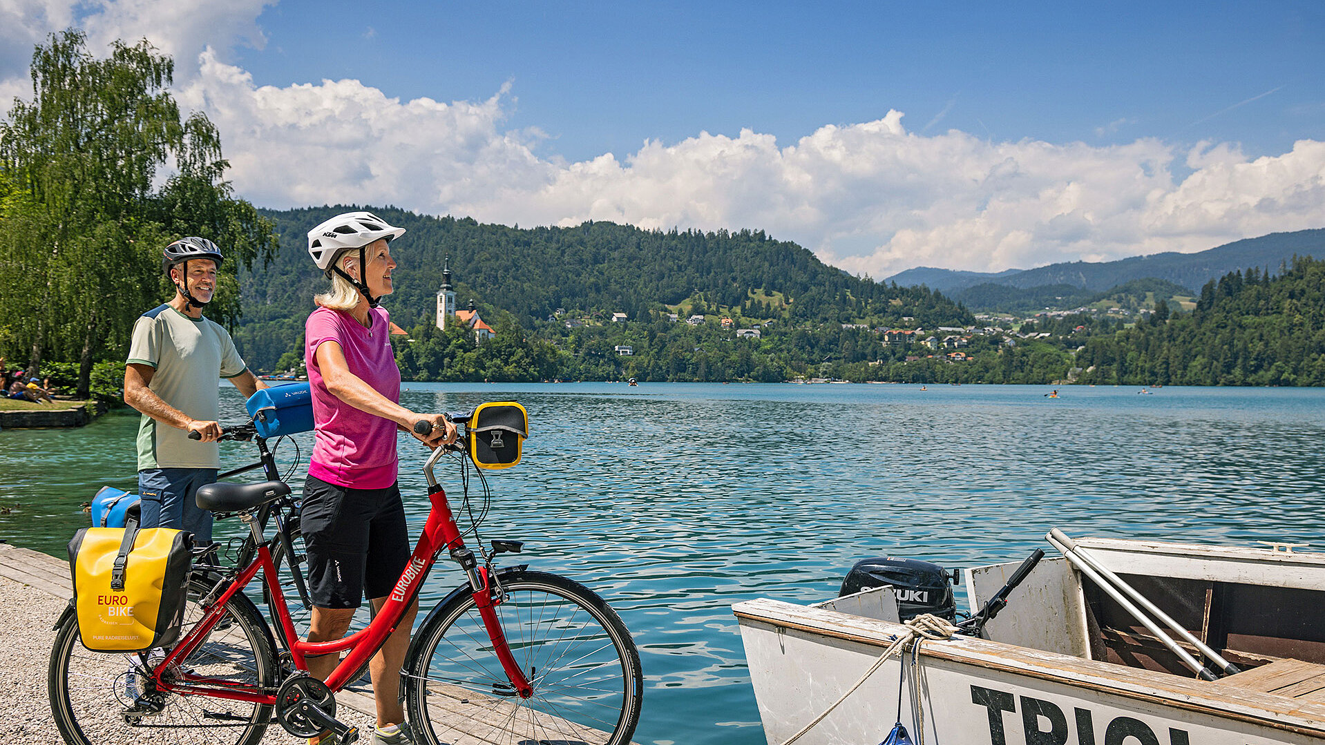 Diese neue Eurobike-Radreise startet am türkisfarbenen Bleder See, der mit seiner Insel in der Mitte das schönste Postkartenmotiv Sloweniens liefert. Da mag man sich kaum trennen – würden nicht auf der Route von den Julischen Alpen bis ans Mittelmeer noch viele weitere Highlights warten. Darunter der malerische Bohinjer See im Triglav-Nationalpark, der spektakuläre Fotospot von der schmalen Brücke über die Soča-Schlucht, das malerische Friaul und die Weinlandschaft des Collio. Zum Abschluss rollen die Radler vom slowenischen Karstplateau hinab zur Adria und feiern in Triest den letzten Tag einer außergewöhnlich schönen Tour.