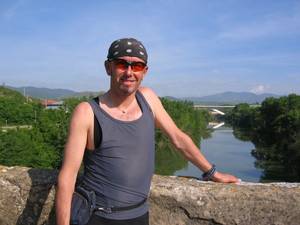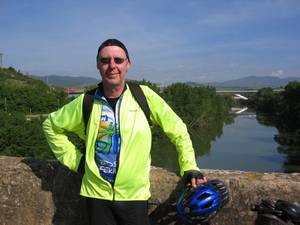 Andreas Hertneck ist selbstständig im Bereich Arbeitsschutz, Technische Ueberwachung und Sicherheit. Ist viel sportlich unterwegs, bewaeltigt im Jahr zirka 173.384 Hoehenmeter und zwar mit dem Mountainbike und zu Fuß. Haegges ist unser Fotograf, der auch schon vor 13 Jahren hervorragende Fotos von dieser Tour nach Santiago schoss.