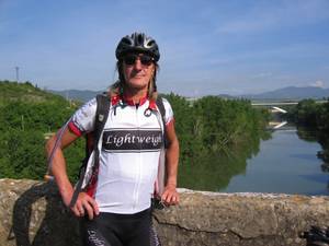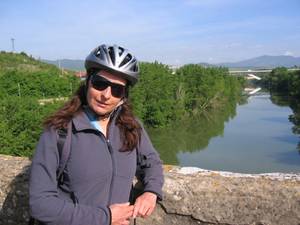 Hat viel mit Medien zu tun, ist reine Freizeitradlerin und hat den Camino schon vor 13 Jahren „erfahren“. Trainingskilometer in diesem Jahr: 300 km"! Ein bisschen Joggen war dabei und das war's auch schon. Ausrüstung: Trinkflasche und sieben Mechaniker (eher sechseinhalb).