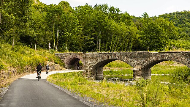 Entspanntes Radeln entlang von Wiesen und Wäldern, über Viadukte und Brücken und immer dem Fluss nach – große Teilstücke des nach der Flut 2021 stark beschädigten Ahr-Radweges sind mittlerweile wieder befahrbar. Von Blankenheim, wo die Ahr im mittelalterlichen Ortskern im Kellergewölbe eines Fachwerkhauses entspringt, bis Ahrbrück nutzt der Radweg eine ausgediente Bahntrasse durch abwechslungsreiche Landschaft. Zwischen Fuchshofen und Schuld, wo ein Teilstück neu gebaut wird, führt der Weg vorübergehend entlang der Landstraße (L73).