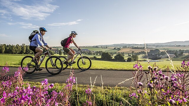 Etwas sportlicher wird es im Bayerischen Wald. Über 7.000 Kilometer markierte Radwege – darunter 1.500 Kilometer Fernrouten – laden zu Rad-Abenteuern ein. Dazu kommt ein breites Angebot für Mountainbiker, etwa die Mountainbike-Route Trans Bayerwald, die auf rund 700 Kilometern durch die schönsten Gegenden des Bayerischen Waldes führt. Auch Familien und Genussradler finden ihr Glück auf zahlreichen Touren, etwa auf der gemütlichen Luckner Runde ab Cham. Vom Chamer Marktplatz aus geht es entspannt hinaus aus der Stadt, vorbei am Geburtshaus des legendären Graf Luckner und hinunter zum Fluss Regen, der die Route ein gutes Stück begleitet. Auf rund 25 Kilometern taucht man ein in die typische Landschaft des Bayerischen Waldes: kleine Dörfer, weite Wiesen, sanfte Anstiege und immer wieder schöne Blicke zurück auf Cham. Die Strecke verläuft überwiegend auf asphaltierten Wegen, mit kurzen Abschnitten auf Schotter, und ist damit ideal für Familien, Genussradler und E-Biker. Die neue Broschüre „Radtipps Bayerischer Wald“ präsentiert eine Auswahl der schönsten Touren von leicht bis anspruchsvoll und ist kostenlos erhältlich.
