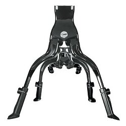Mit dem Double-Flex präsentiert Humpert einen universellen Doppelbein-Ständer. Seine Doppelgelenk-Konstruktion sorgt für große Stützbreite und schmales Klappmaß.