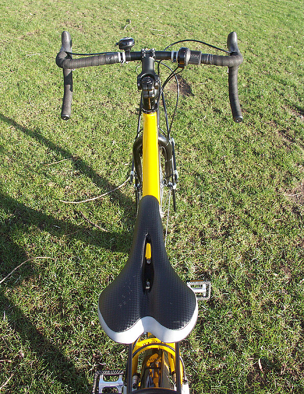 Etwas schwieriger wird es aus Sicht der Tester in Kombination mit dem Randonneur. Dieser ist immerhin im Gegensatz zum üblichen Rennlenker im mittleren Teil schon etwas zum Fahrer zurück gebogen, um eine aufrechtere Haltung zu ermöglichen. Für Zeitgenossen mit durchschnittlichem Bein-Oberkörper-Armlängen-Verhältnis ist diese Griffhaltung beim Testrad auch recht bequem. Doch will man von den Vorteilen der Form Gebrauch machen und die verschiedenen Positionen ausnutzen – Bremsgriffhaltung oben, Krümmung seitlich oder gar Unterlenkerhaltung für die Bergabfahrt – kann es unbequemer werden; zumal man durch die extreme Lenkerbreite von mindestens 52 cm auch noch deutlich weiter als Schulterbreite greifen muss.