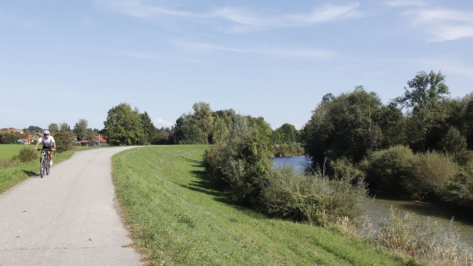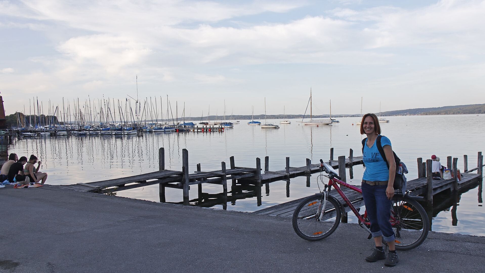 Zurück an der Alten Amper, fliegt man fast schon auf geteerten Wegen durch hochstehende Mais- und Sonnenblumenfelder. Bald ist Raisting erreicht und nach einem kurzen Stück entlang der Bahnlinie auch der Ortsrand von Dießen. Nun hat man die Wahl: Links geht es ins historische Zentrum, alternativ folgt man dem Weg rechts der Bahnlinie und gelangt bald ans Ufer des Ammersees, wo Liegewiesen, Kioske und ein kleiner Hafen mit Segelbooten zum Relaxen, Baden und Eisessen einladen.