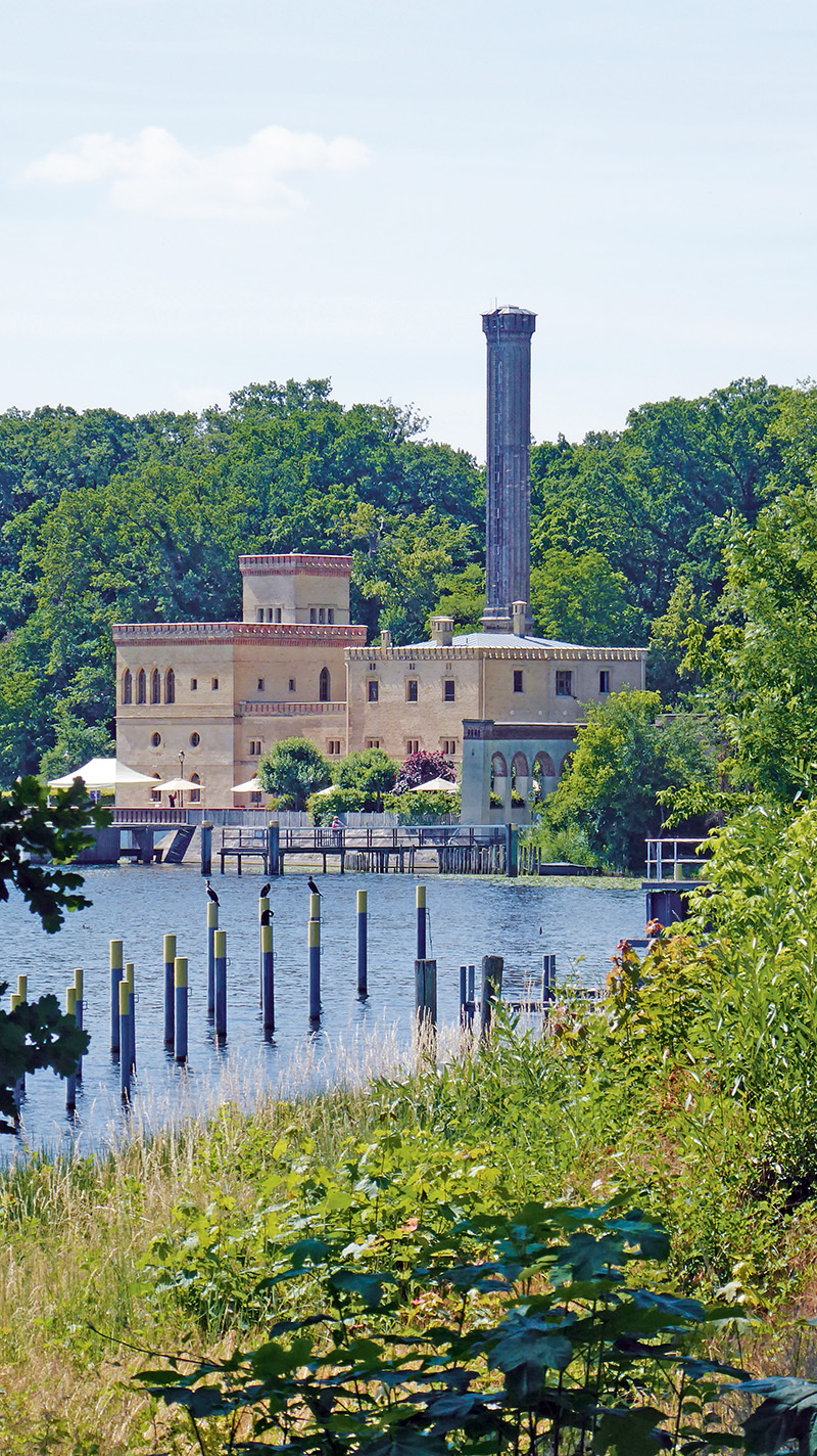 Wir fahren über die Nedlitzer Nordbrücke, von der aus wir einen guten Überblick über das Gutshaus Nedlitz haben, das Ludwig Persius Mitte des 19. Jahrhunderts im normannischen Burgenstil ausgebaut hat. Bis 2020 wurde das Gutshaus mit Turm und Eckbekrönung saniert. Mit den umliegenden Bauten wurde es zu einer Wohnanlage mit mehr als 200 Wohnungen entwickelt. Preußens Arkadien als attraktive Wohnlage und – ein Stück weiter am Jungfernsee – als Kulisse für Zukunftstechnologie. Denn weithin sichtbar kommt uns das Logo der Softwareschmiede SAP entgegen, des europaweit größten börsennotierten Softwareunternehmens. Das SAP Innovation Center wurde bis 2013 hier errichtet. Mittlerweile entstand neben dieser Ideenwerkstatt ein Think Campus mit über 10.000 Quadratmetern Bürofläche, in die unter anderem zwei private Universitäten eingezogen sind. Daneben leuchten weiß die Villen und Reihenhäuser eines neuen Nobel-Viertels am Jungfernsee.