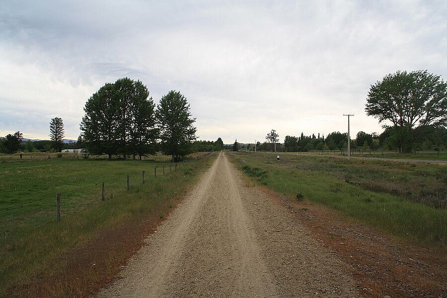 Den letzten Abschnitt des Otago Central Rail Trails nehme ich am nächsten Tag in Angriff. Nach dem zweiten Tunnel geht der Weg wie gewohnt schnurgerade in Richtung Middlemarch, der Endstation dieser historischen Reise. Hartnäckiger Seitenwind drückt mir auf den letzten 36 Kilometern ordentlich das Vorderrad zur Seite und trainiert meine Balancefähigkeiten mit dem Anhänger. Endlich wieder auf Asphalt angekommen, halte ich ein letztes Mal an und betrachte die Willkommenstafel des Railtrails. Voller nostalgischer Gefühle kann ich mir meine nächsten Ziele setzen. Ich biege nach links ab und fahre einige Kilometer gen Norden, den Wind im Nacken. Die Kleinstadt Middlemarch mit ihren schätzungsweise fünf Häusern liegt verlassen da. Ein Blick zurück an den Himmel offenbart mir eine näherkommende Gewitterfront mit Sturmböen und Temperatursturz. Während sich im selben Augenblick der Asphalt wieder in groben Schotter verwandelt und ich für die nächsten 50 Kilometer hügeliges Nirgendwo erwarten darf, krönen unzählige gruselige Schafsköpfe und -felle auf Stacheldrahtzäunen mein mulmiger werdendes Gefühl beim Ertönen des Donnergrollens hinter mir, doch das ist eine andere Geschichte …