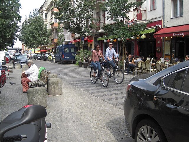 Der Radverkehrsanteil am Berliner Gesamtverkehr liegt derzeit bei 13 %, im dicht besiedelten Kreuzberg sogar bei 25%. Keine europäische Stadt mit vergleichbarer Größe erreicht einen ähnlichen Anteil, meldet das Bundesministerium für Verkehr. Dank des hohen Anteils an Grün- und Wasserflächen kann man zudem viele Radstrecken autoverkehrsarm durch Parks, Grünverbindungen oder an Uferwegen zurücklegen. Eine Stadt zum Flanieren. Was die gemeinsame Nutzung von Wegen durch Fußgänger und Radfahrer betrifft, hat Berlin eine eigene Kultur entwickelt – die der gegenseitigen Rücksichtnahme. Auch im Schlosspark Charlottenburg oder dem Tiergarten, in denen das Fahren eigentlich auf die Hauptwege beschränkt bleiben soll, kommt es selten zu Konflikten.