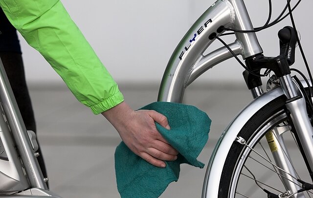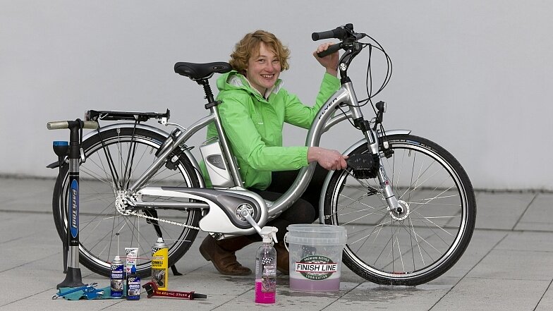 Einen Frühjahrsputz hat jedes Velo verdient. Denn ein sauberes Rad verspricht nicht nur mehr Fahrvergnügen, es gibt auch den Blick auf evtl. beschädigte Bauteile frei. Am besten geht das immer noch mit lauwarmem Wasser und einem Lappen oder Schwamm. Hartnäckige Verschmutzungen können mit speziellen Reinigern entfernt werden. Eine Schutzpolitur im Nachgang pflegt und schützt die Oberflächen des Velos und sorgt für langanhaltenden Glanz.