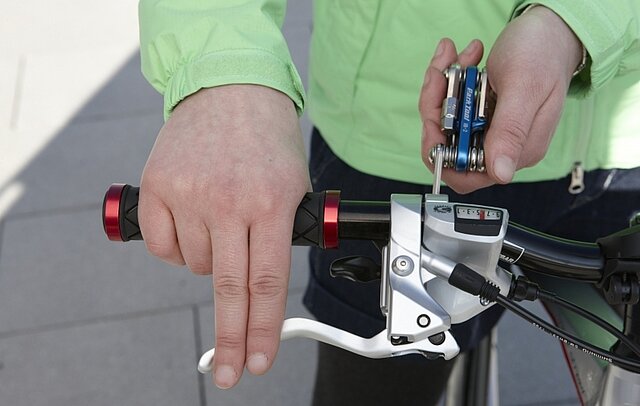 Im Anschluss sollten die Schrauben aller tragenden Bauteile wie etwa an Vorbau, Lenker, Kurbeln und Kettenblätter auf ihren festen Sitz hin überprüft werden. Ein kurzes Anheben und Fallenlassen des Rades verrät geräuschvoll lockere Verbindungen am Velo. Bei filigranen Bauteilen, etwa aus Carbon, sollte beim Schrauben immer das angegebene Drehmoment beachtet werden. Entsprechendes Werkzeug ist im Fachhandel erhältlich.